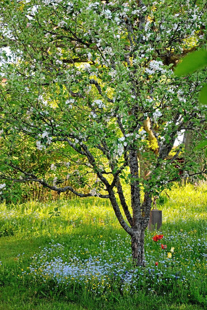 Sedan blommar fruktträden och då blir det nästan för vackert. Får man ha det så här?