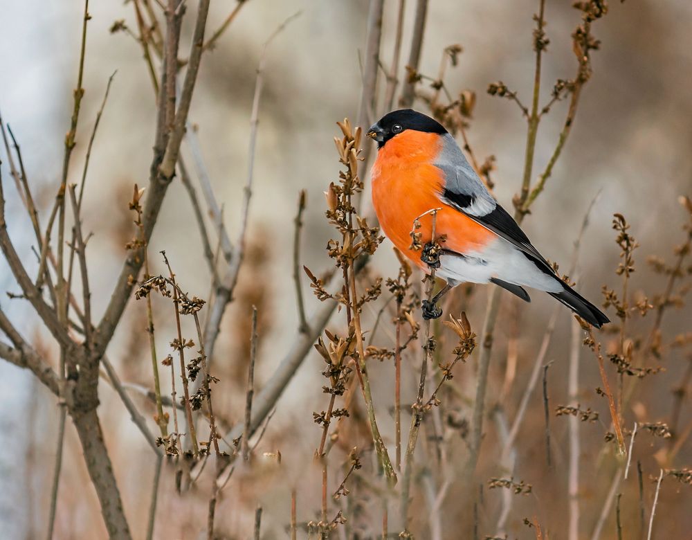 Mitt i kalla vintern lockas domherrarna in i våra trädgårdar för att äta godsaker som kvarglömda nypon och feta syrenfrön.
