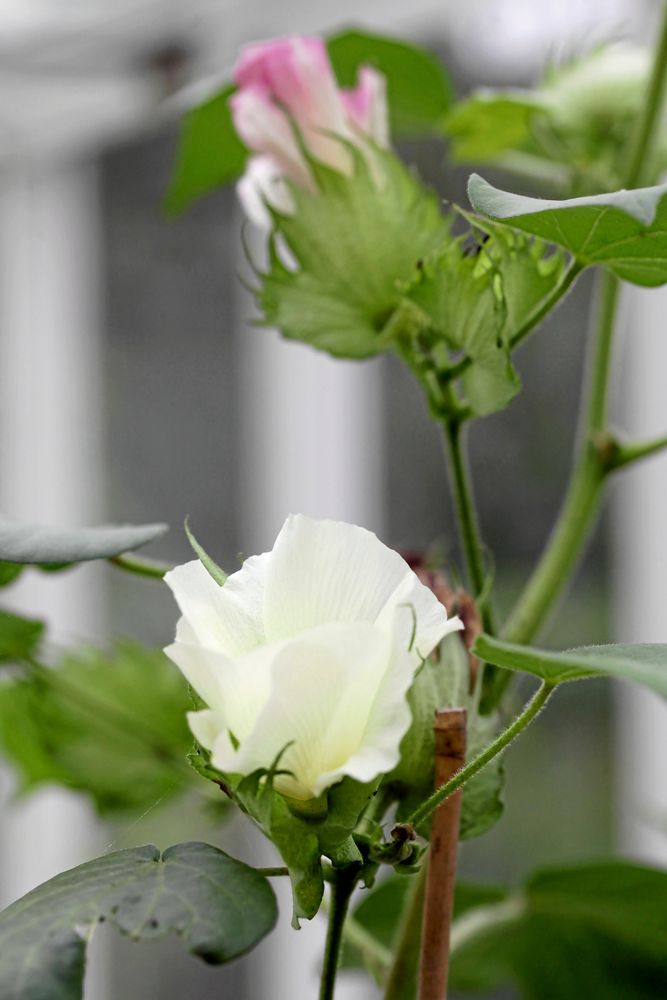 Höjden på plantorna kan variera. Indisk bomull ,Gossypium herbaceum, blir cirka 50 centimeter hög och får gula hibiskusliknande blommor medan den mexikanska blir minst en meter hög och får rosa blommor som övergår i vitt.