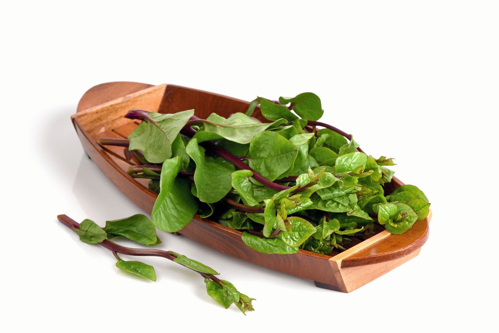 Malabarspenat (basella alba) är en slingerväxt som härstammar från södra Asien där både blad, toppskott och gröna blomknoppar används i soppor och grytor.