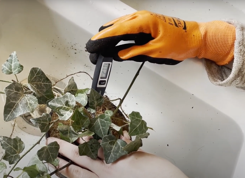 Sänk ner krukan helt i vattnet och vänta tills termometern visar 40 grader mitt i jordklumpen. Det går fortare om du hissar krukan lite upp och ner.
