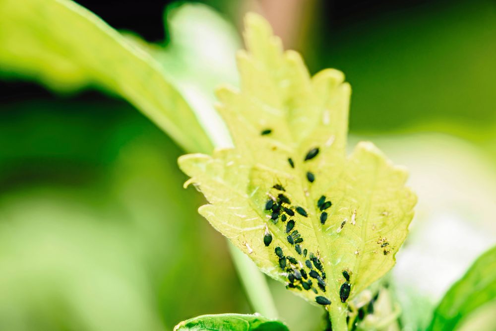 Inte bara ärterna utan även bönor, tomater och chili – och andra blad som bladlössen älskar. Ett knep är att blanda en såplösning i en blomspruta och spreja på lössen så att de kvävs.