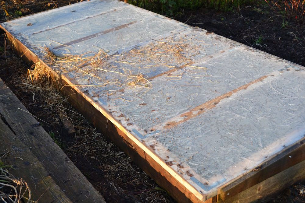 Odlingslådor/pallkragar med lock av plast eller glas.