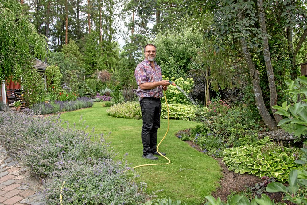 – Cirka 20 minuter om dagen kan vi vattna med dammvattnet, det var väldigt bra när det var så torrt förra sommaren, säger Lars.