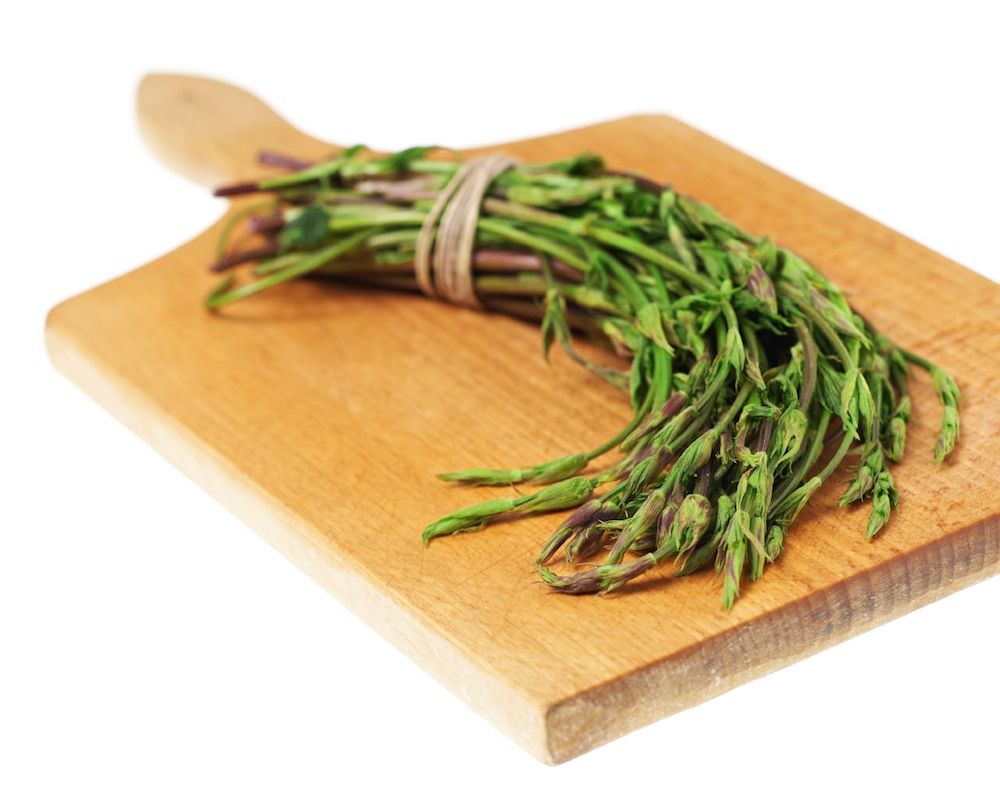 De första små skotten kan plockas, kokas och serveras med smör, salt och lite citron.