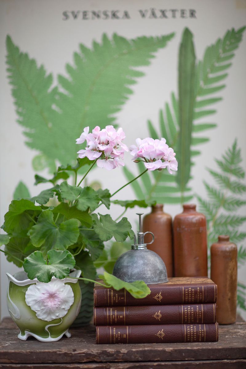 I år utökas sortimentet med gamla tiders pelargoner med tre nya sorter. En med äppelblom från Norrbotten, en laxrosa dröm från Blekinge och en med blommor som doppade i smultron och mjölk.