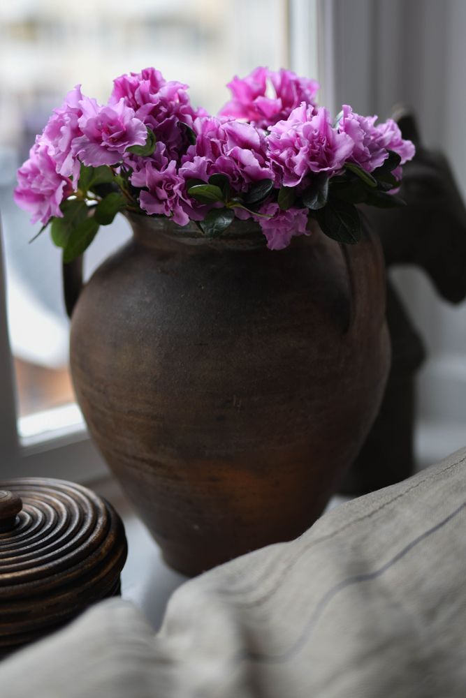 Köp din azalea med knoppar som visat färg, gärna också öppnat några av dem lite. Vattna dem sedan skvättvis i stort sett varje dag.