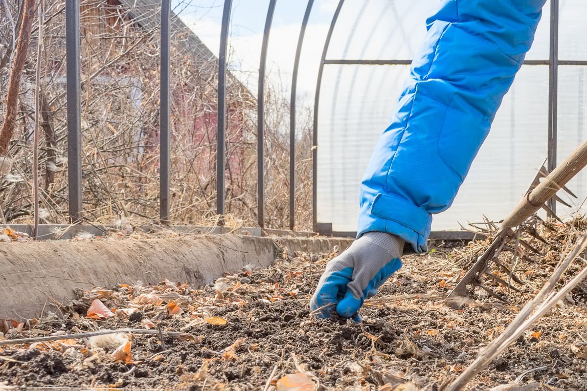 Ta ut all inredning som sitter löst, krukor och hinkar och diska av. Nu har du fri sikt överallt och kan se om något gått sönder under vintern. Se till att clips som håller glasen på plats är intakta och byt ut trasiga rutor.