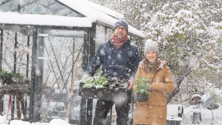 ”Vi har släppt alla regler. Inga rader, ingen växtföljd, inga speciella plantavstånd”. I stället har Johannes Wätterbäck och Theres Lundén, mer kända under aliaset Farbror Grön, blivit serieodlare med sådd och skörd året om.